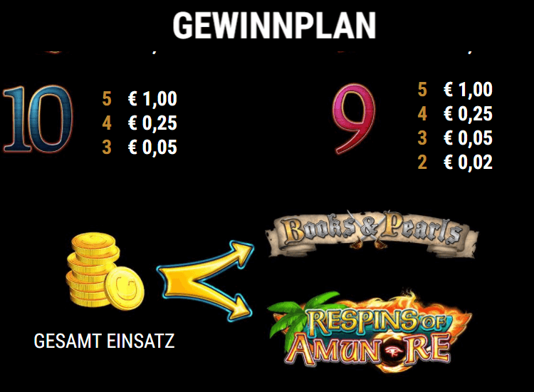 Besonders interessant wird es allerdings, wenn es an die Bonusfunktionen geht. Ein Wort der Warnung: Diese Features sind vielzählig, komplex und für manch einen Spieler wohl etwas überwältigend. Books and Pearls Respins of Amun-Re kostenlos spielen ohne Anmeldung wird somit zur idealen Einstiegsoption, und zwar nicht nur für Einsteiger, sondern auch für erfahrene Casinobesucher.